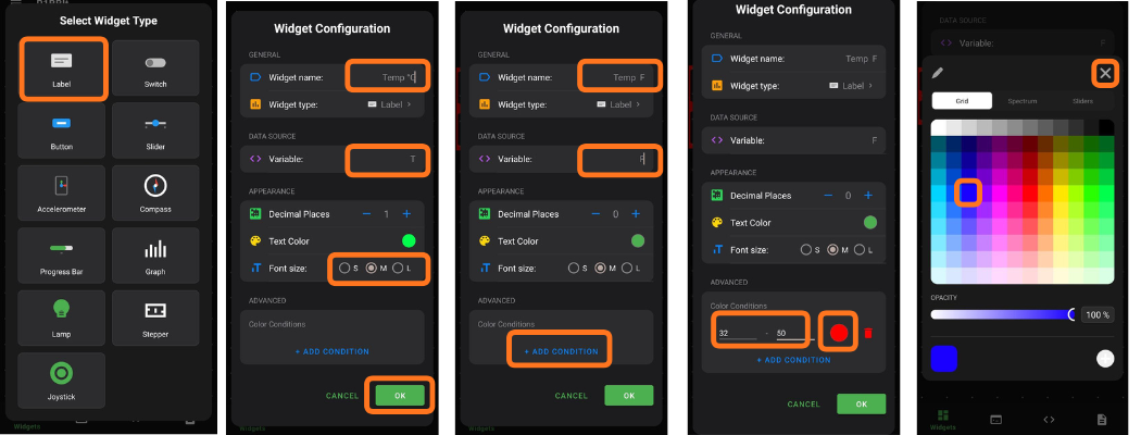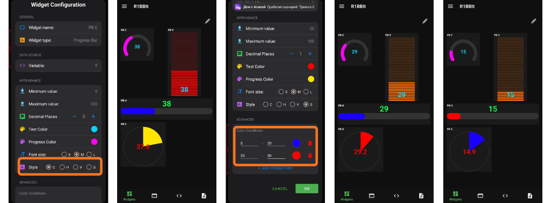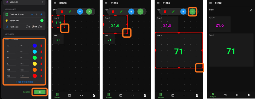 You can also enable color changes based on different value ranges of the variable.