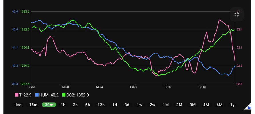 By tapping and holding on the graph, a cursor appears, allowing you to precisely inspect values for all variables at a specific point in time.